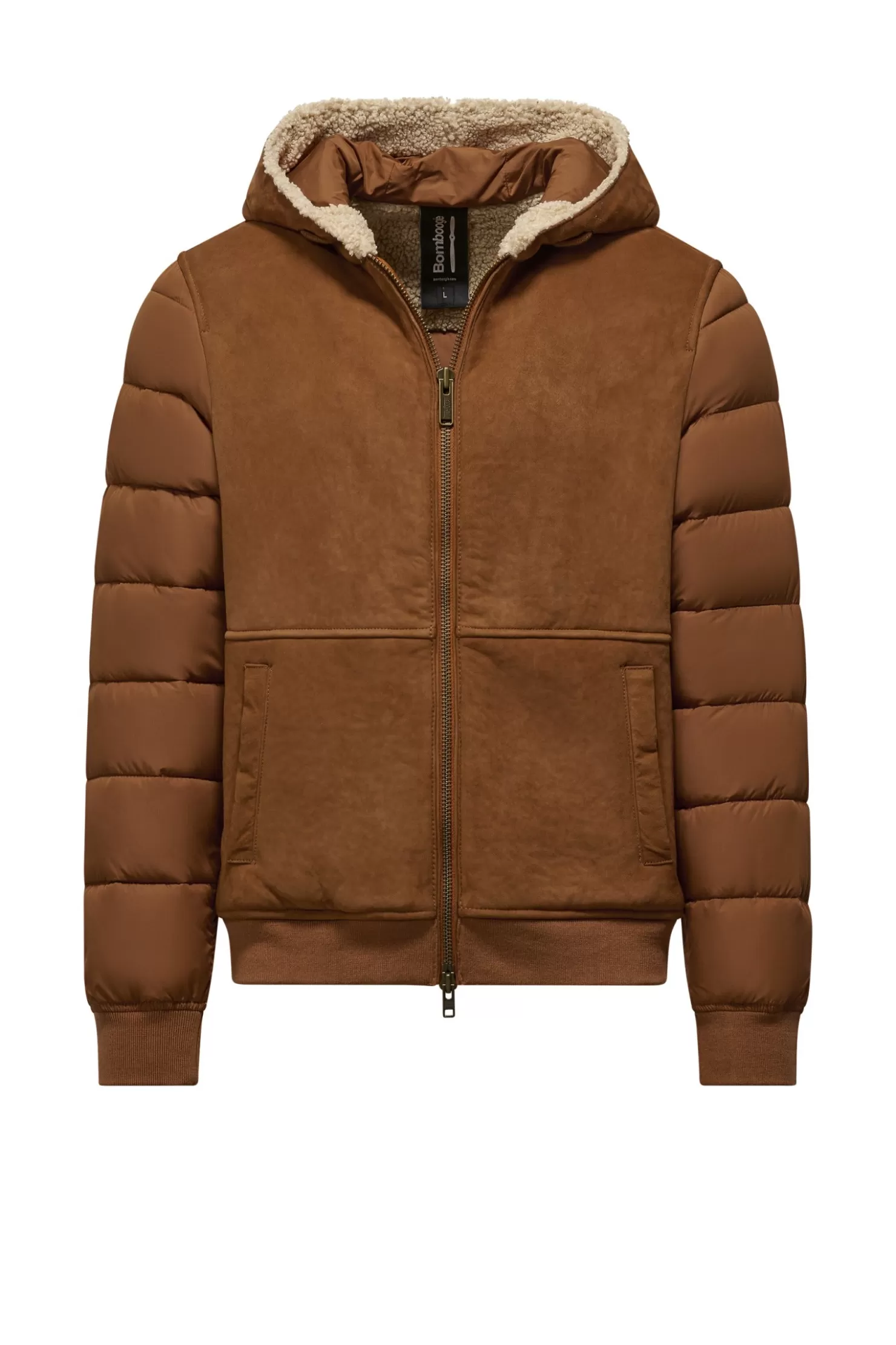 Gepolsterte Herren-Jacke aus weichem, echtem Ziegenveloursleder, mit Einsätzen aus Teddy-Stoff und Nylon. Ein Modell mit Kapuze, ideal für die Zwischensaison, trendy und perfekt, um Ihren Herbst-Looks einen Hauch von Originalität und Schwung zu verleihen.