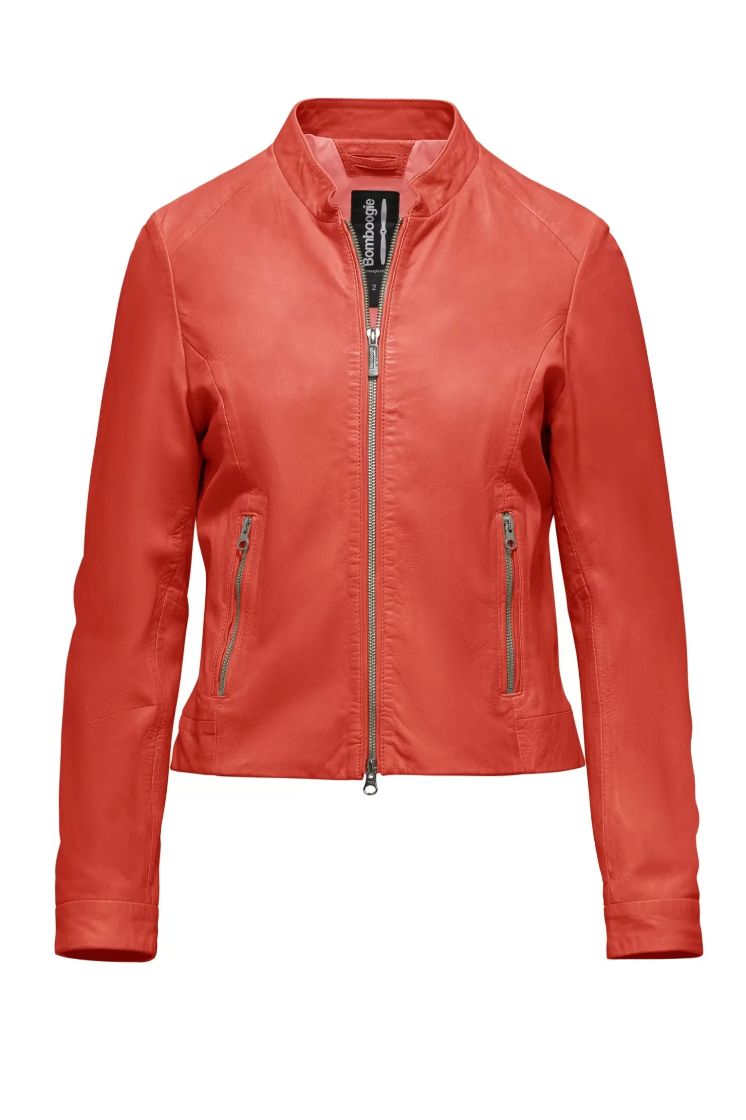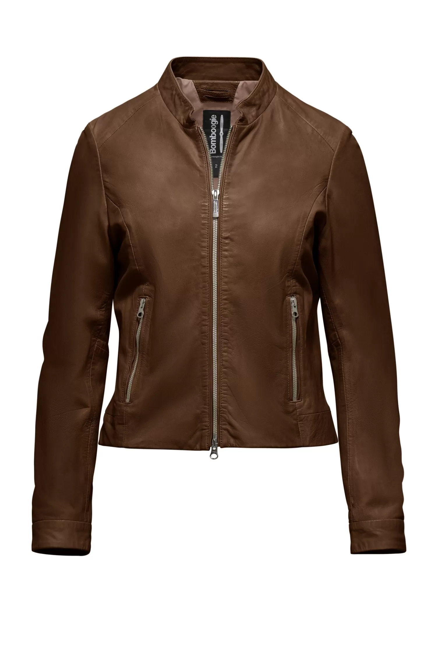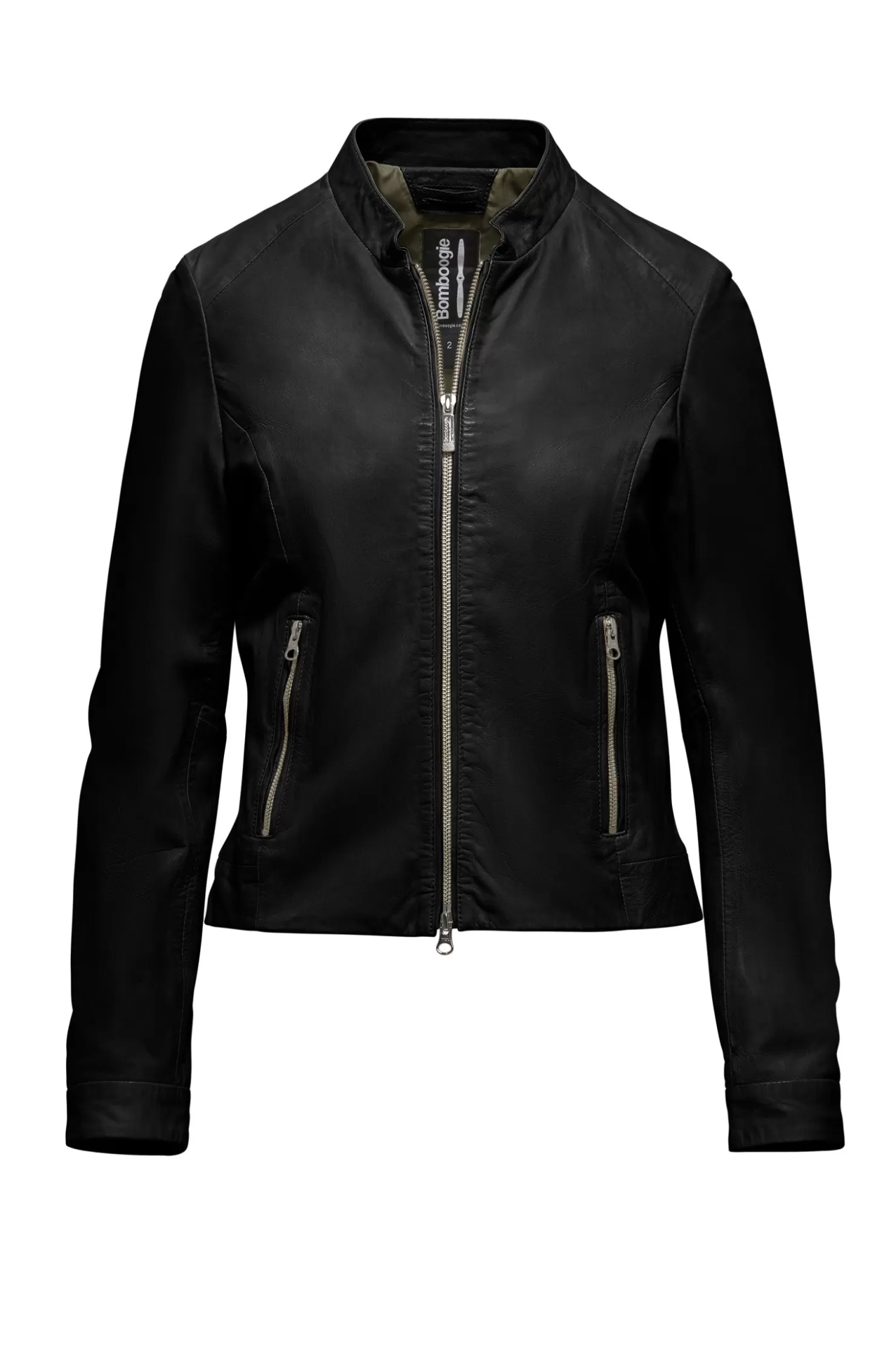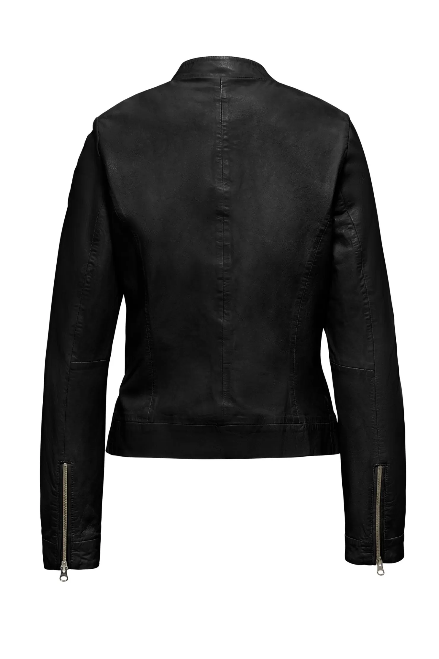 Lederjacke mit essenziellen Linien, Modell mit Stehkragen, leicht mit jedem Look zu kombinieren.