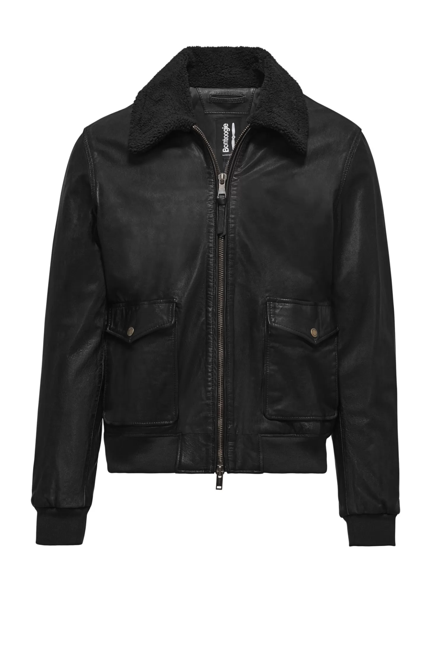 Jacke aus echtem Leder mit Fliegerinspiration, ein vielseitiges Modell mit einfachen Linien, perfekt für die Zwischensaison.