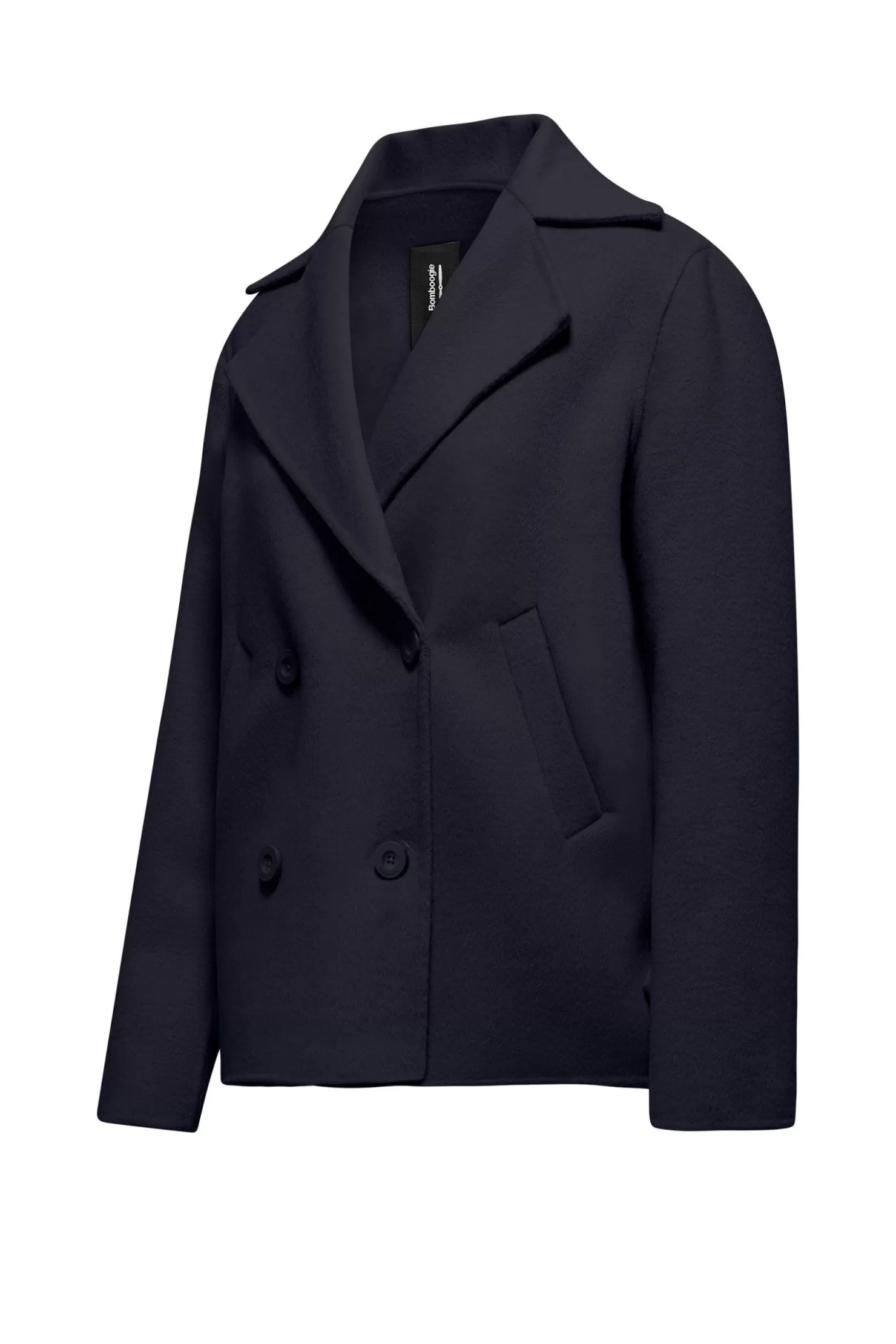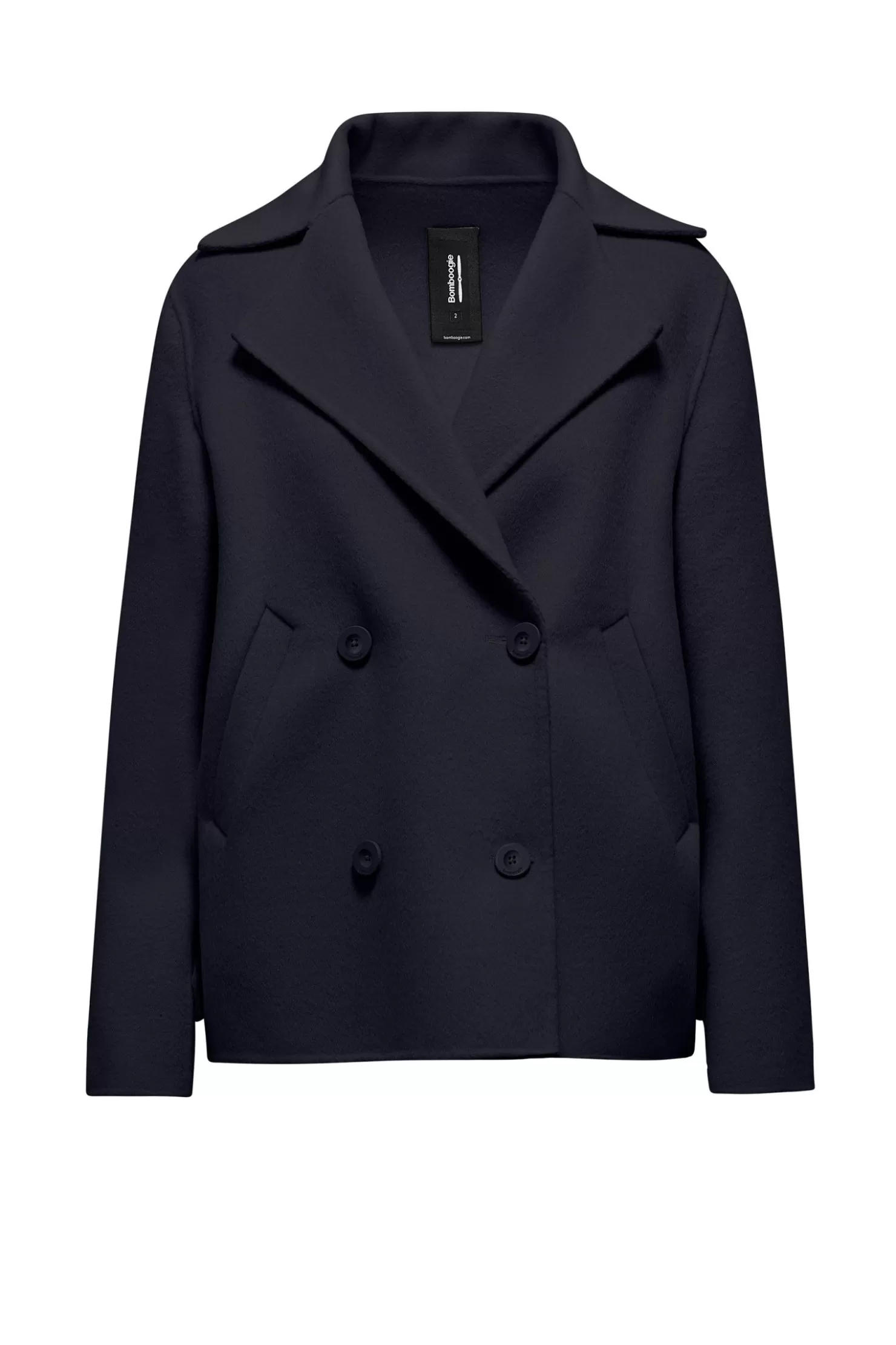 Kurzer Mantel aus weichem und warmem Wollstoff. Zweireihiges Modell mit einer geraden, essentiellen Linie.Aus: Wollstoff…