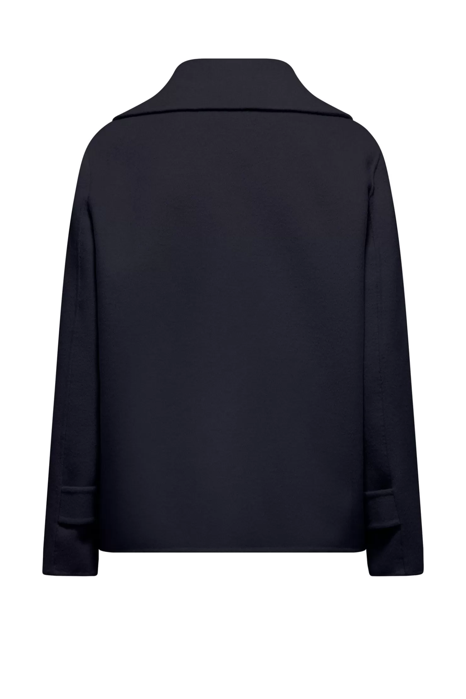 Kurzer Mantel aus weichem und warmem Wollstoff. Zweireihiges Modell mit einer geraden, essentiellen Linie.