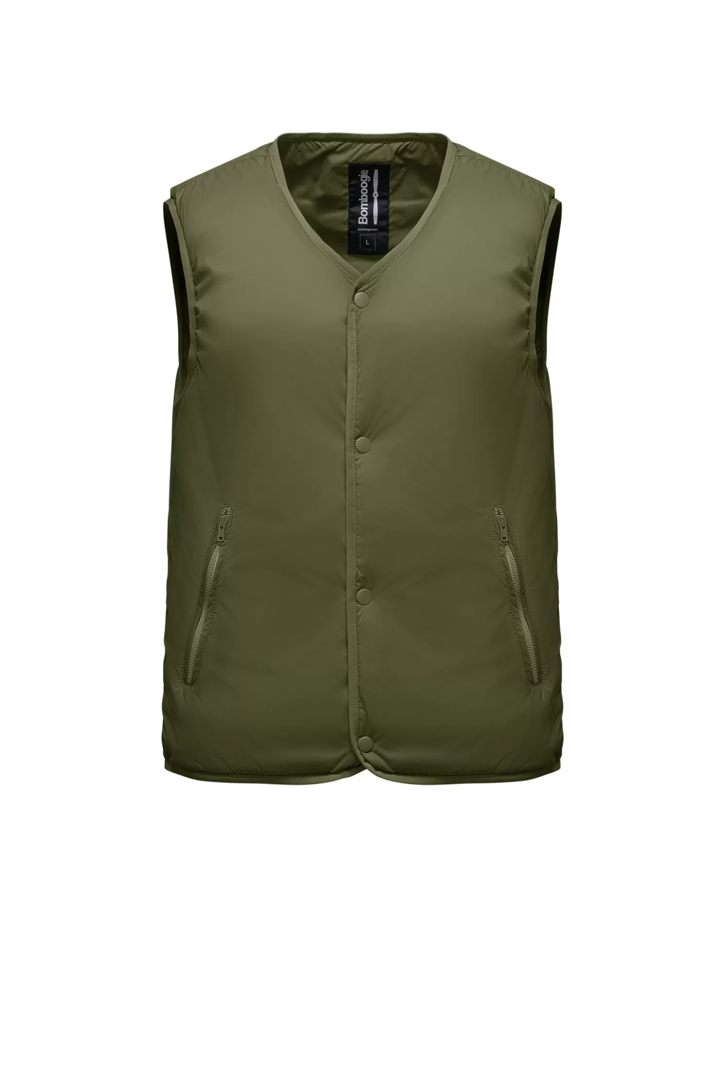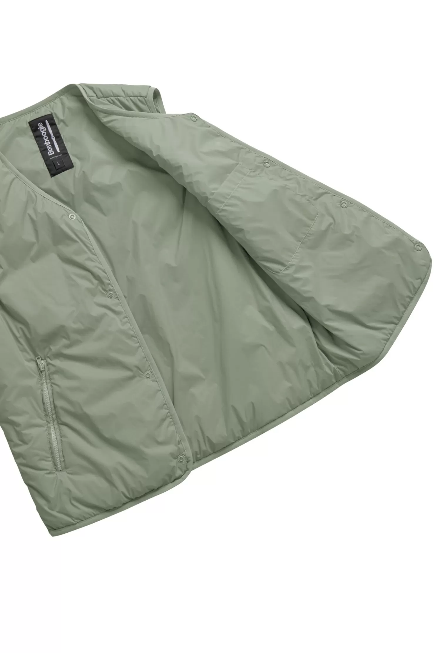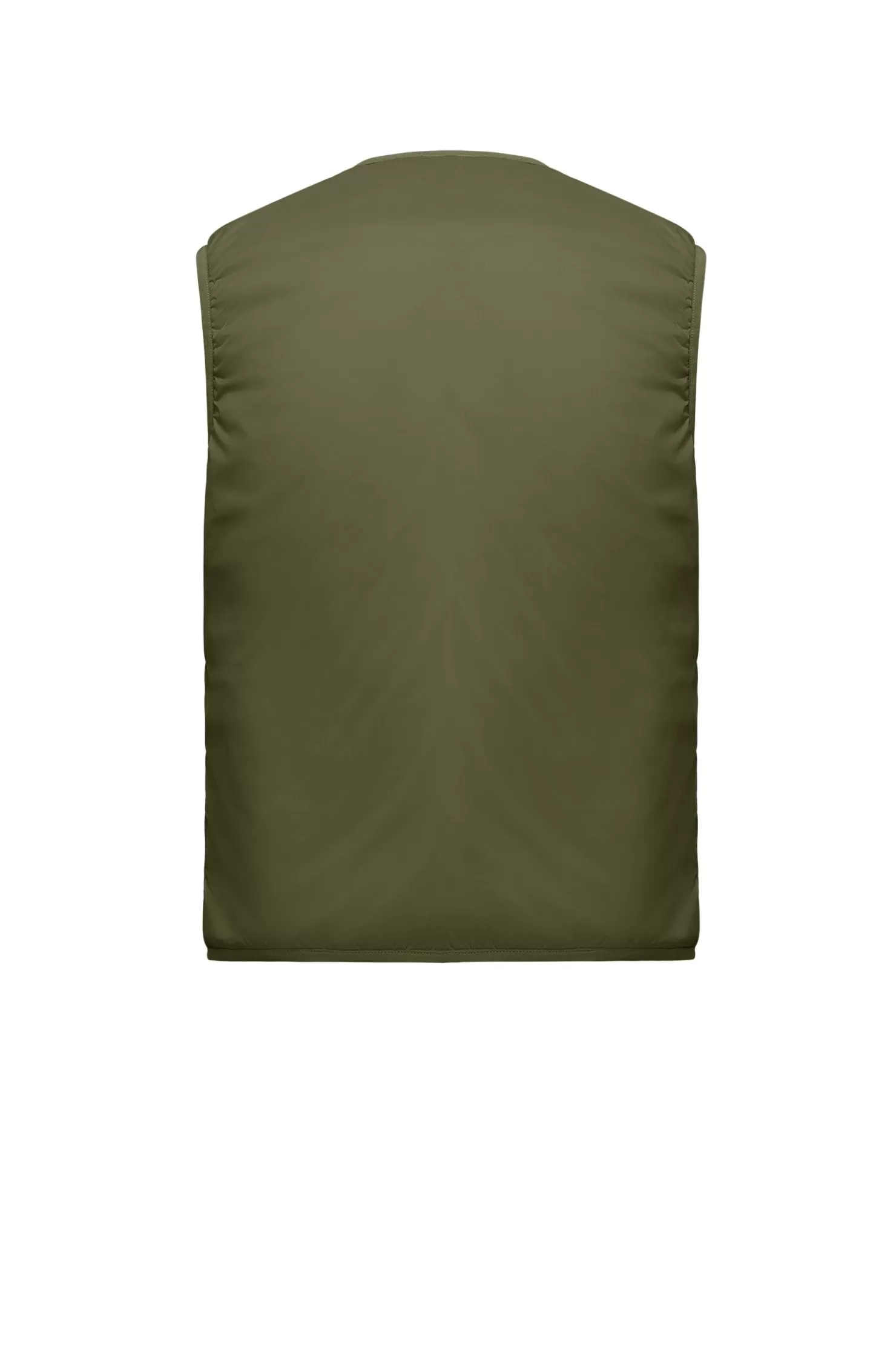 Eine Weste aus recyceltem Nylon mit essenziellen Linien und einer leichten synthetischen Polsterung, perfekt für den Saisonstart und um den Looks eine persönliche Note zu verleihen.