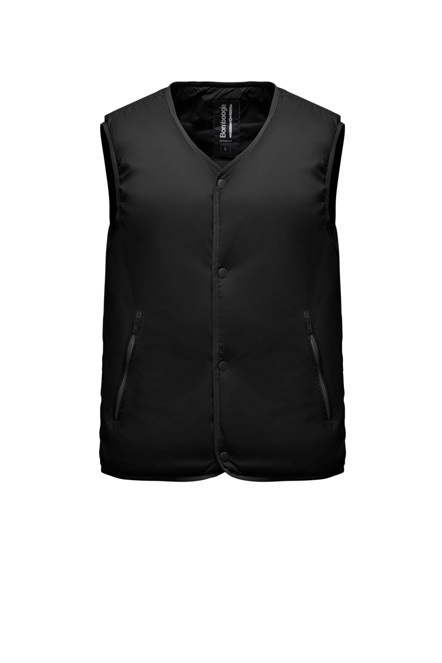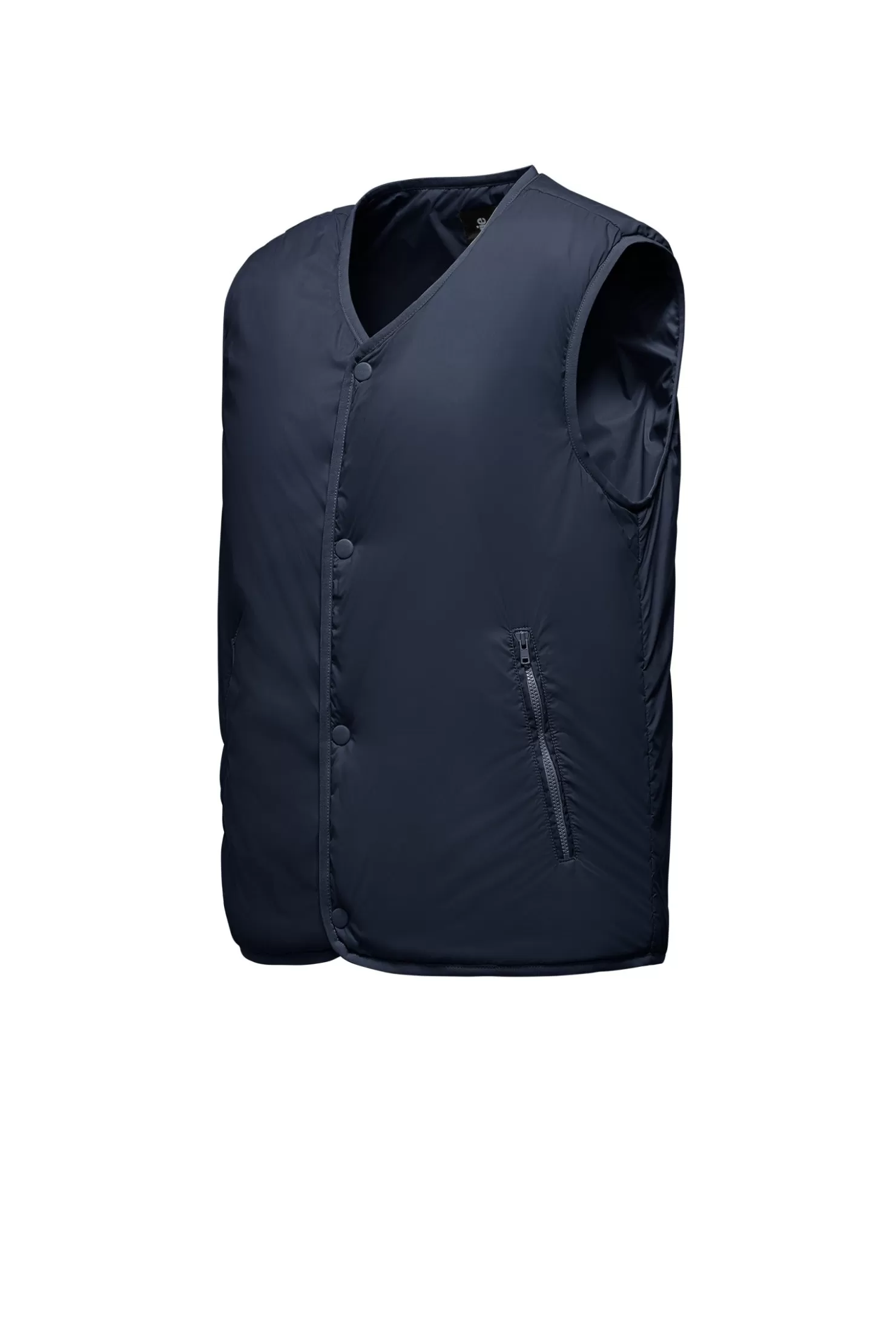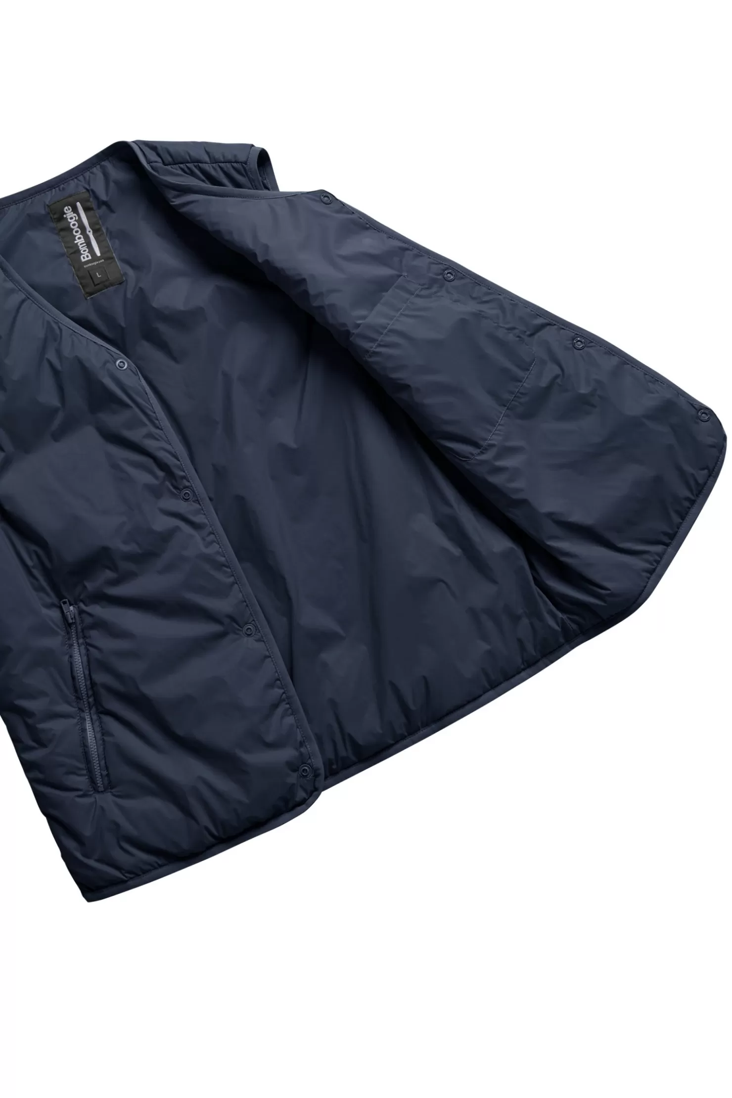 Eine Weste aus recyceltem Nylon mit essenziellen Linien und einer leichten synthetischen Polsterung, perfekt für den Saisonstart und um den Looks eine persönliche Note zu verleihen.